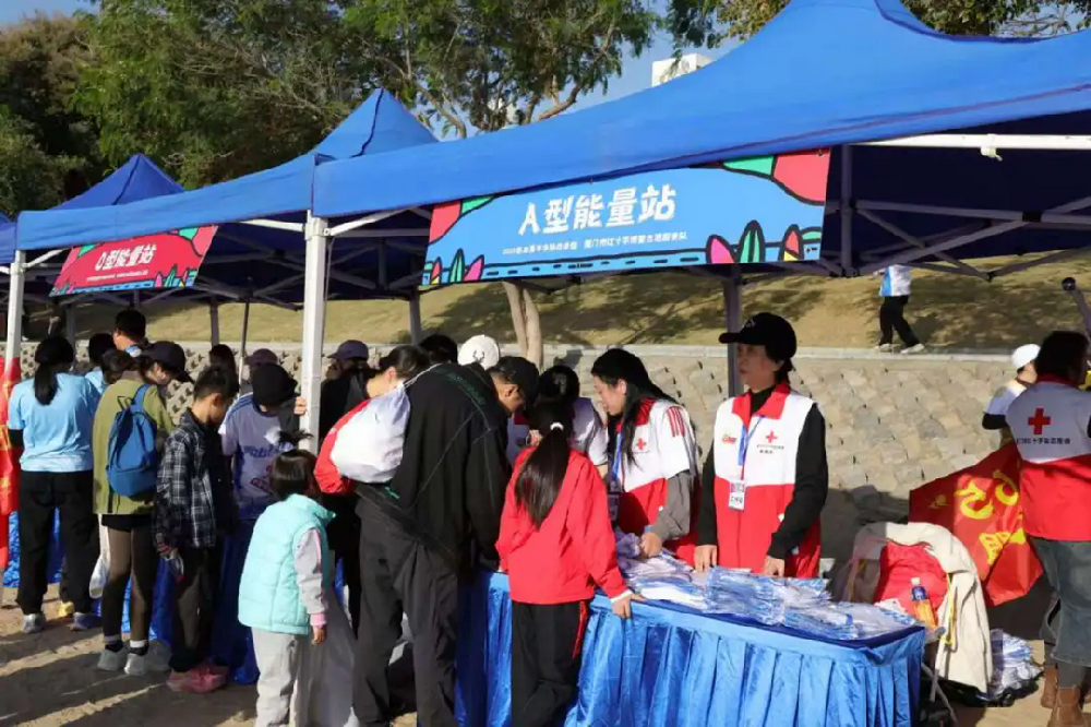 早前,厦门市红十字会博爱志愿服务队还参加了2025热血嘉年华健康跑5km活动以及负责同场活动的能量补给站公益保障工作。这场以“运动+公益+科普”为核心导向的活动中,红十字志愿者们既是传递爱心的奔跑者,也是能量补给站的公益守护者,用行动为献血公益注入满满暖意。