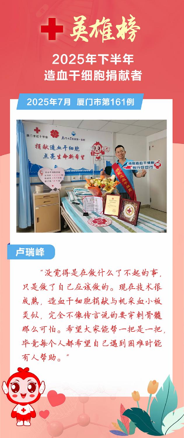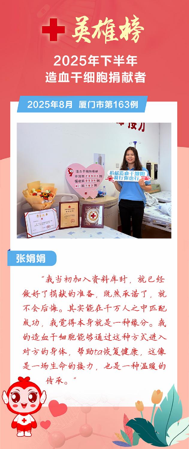 厦门市红十字会呼吁更多健康适龄的爱心人士加入中国造血干细胞捐献者资料库,也许下一个创造生命奇迹的英雄就是你!