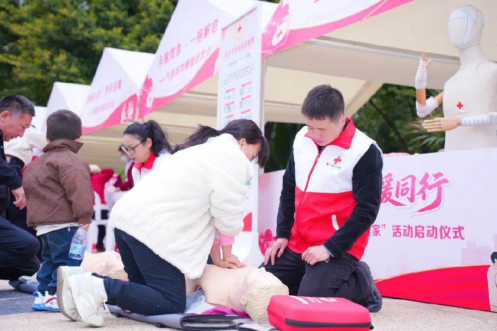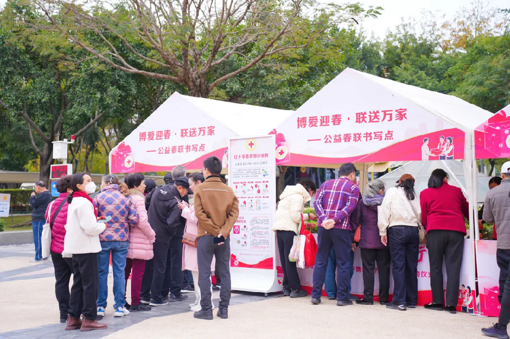 此外,现场还安排了慰问演出、应急救护演练、心肺复苏培训、健康咨询、书写春联等系列活动。红十字志愿者与市民积极互动,场面温馨热烈。