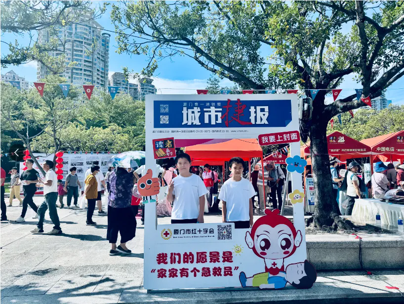 在上周六的厦门日报社第二十四届读者嘉年华上,由厦门市红十字会与城市捷报社联合打造的"赴生命之约,聚人道之光"主题专区,成为全场最具人气的打卡点之一,吸引着众多市民热情参与。