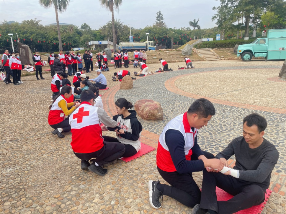 实操考核环节,前往环岛路海边人群聚集区,以“急救快闪”的形式开展,激发群众学习热情,强化群众应急救护意识。